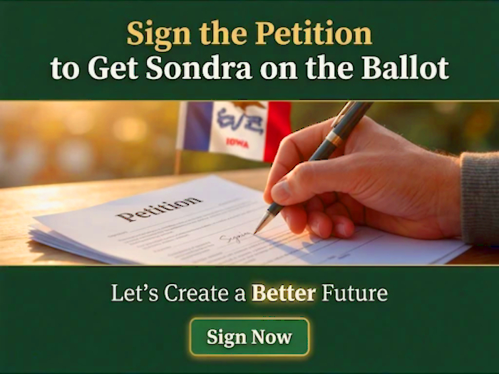 Sondra Wilson for Iowa Governor Official Platform For the November 3, 2026 Election Updated April 2, 2026. 🚧 Platform Update in Progress — New Sections Released Daily I’ve spent years building a comprehensive, solutions-based plan for Iowa’s future — and I’m currently…
